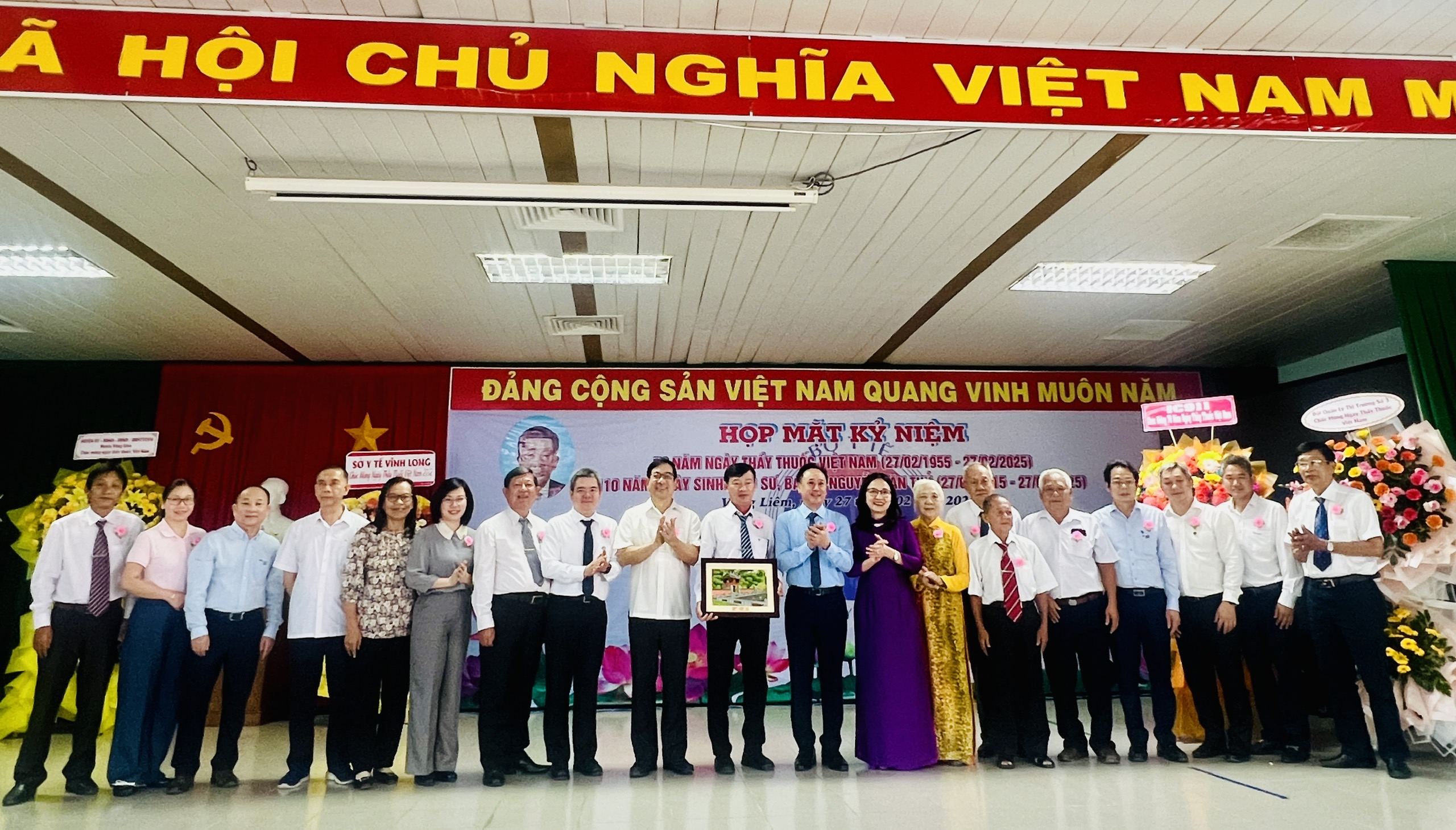 Các đại diện Ban Chấp hành Hội RHM VN chụp ảnh lưu niệm cùng TS.BS. Hồ Thị Thu Hằng – Giám đốc SYT Vĩnh Long tại Lễ kỷ niệm 70 năm ngày Thầy thuốc Việt Nam 27.2.2025
